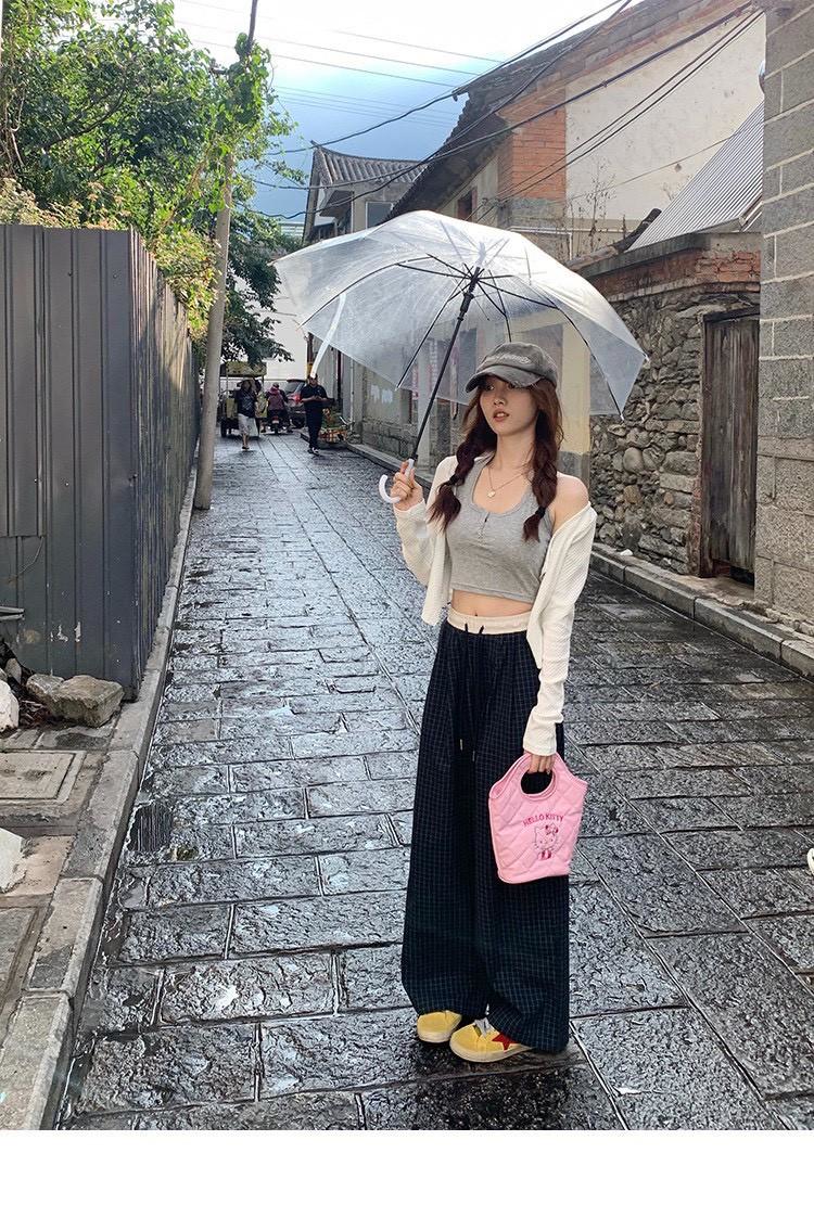拼接撞色格紋+全鬆緊抽繩設計,